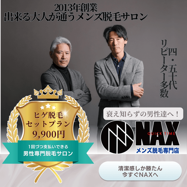 ひげ脱毛は、清潔感や時短、さらにはスタイルアップといったさまざまなメリットを提供します。40代・50代の男性にこそ試してほしいこのプランで、ワンランク上の自分を目指しませんか?メンズ脱毛NAXでは、あなたの悩みに寄り添った丁寧な施術を行っています。ぜひ、お気軽にお問い合わせください!