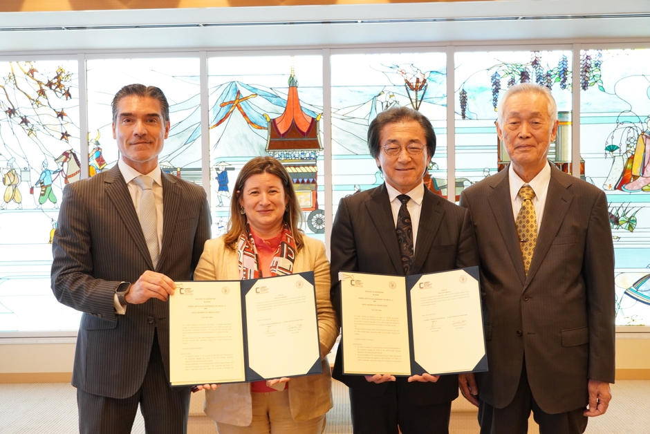 京都外国語大学は、4月18日(木)にポルトガル大使ヴィトル・セレーノ閣下立ち会いの下、カモンイス院のアナ・フェルナンデス総裁と学術講座設置に係る調印式を行いました。これは、ポルトガル政府の文化促進団体であるカモンイス院が本学と「ルイス・フロイス学術講座」を設置することを承認したことを受けて実施。この講座にその名を冠すルイス・フロイスは、戦国時代に日本で布教活動を行ったイエズス会の宣教師で、織田信長や豊臣秀吉と会見した経験を持ち、戦国時代を外国人の視点から観察し、『日本史』を著しました。この著作は戦国時代を研究する貴重な資料として高く評価されており、本学の故・松田毅一名誉教授と故・川崎桃太名誉教授が、『日本史』(中央公論社、全12巻)を初めて完訳するなど、本学とフロイスの間には深い縁があります。カモンイス院の学術講座は世界の主要23か国に設置されていますが、今回の調印により日本で初めて本学に学術講座が設置されることになります。この調印式の様子は、現地ポルトガルの新聞「Diário de Notícias」でも大きく取り上げられました。