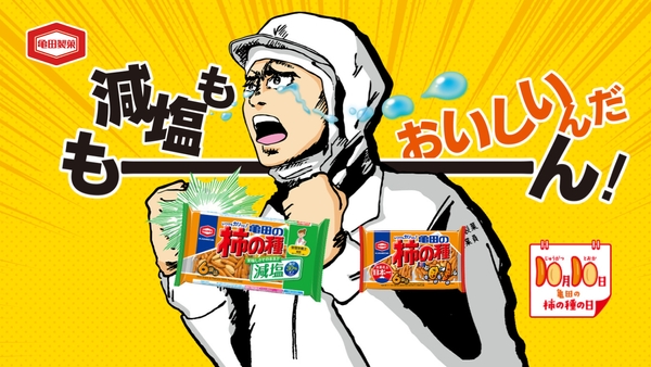 亀田製菓株式会社(本社:新潟県新潟市、代表取締役社長 COO:髙木 政紀)は、発売から56年の伝統を誇る米菓売上No.1※「亀田の柿の種」の記念日である10月10日(月)「亀田の柿の種の日」を前に、2022年9月26日(月)から10月30日(日)までの間、『減塩 亀田の柿の種』を食べてみた感想をお客様に聞く「亀田の柿の種 減塩もおいしいんだもーん!」キャンペーンを実施いたします。これまでも「亀田の柿の種の日」には、「亀田の柿の種」がおやつなのか、おつまみなのかを問う「亀田の柿の種 何なの?問題」や、わさび・梅しそ味の辛さ・すっぱさを問う「亀田の柿の種 超わさび・超梅しそ全国統一品質審査」などでお客様のリアルな声をお聞きしてきましたが、今年は『減塩 亀田の柿の種』のおいしさについてお客様の正直な感想を募集いたします。