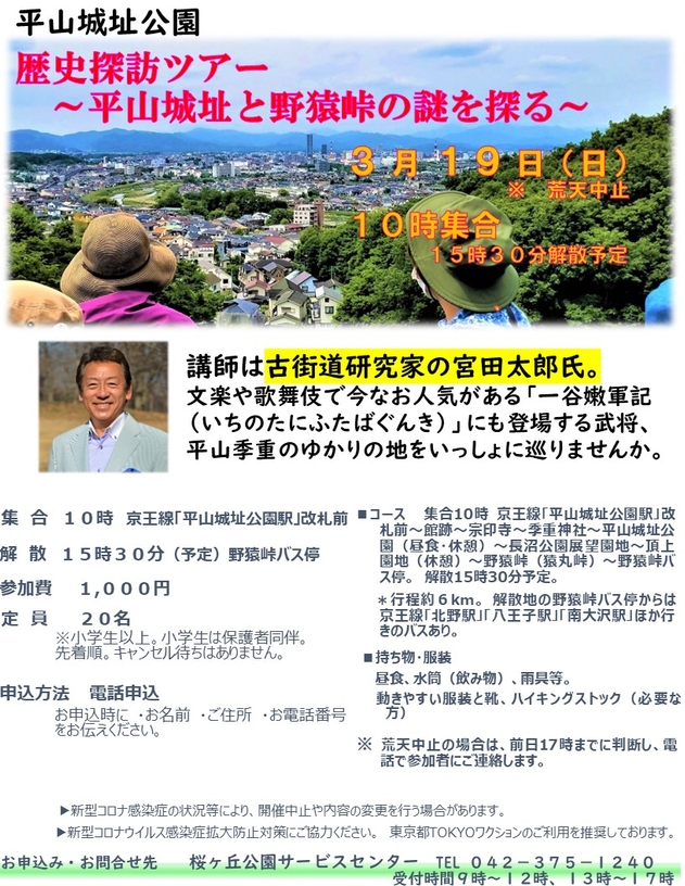 歴史探訪ツアー「平山城址と野猿峠の謎を探る」