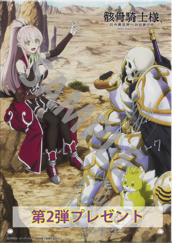 株式会社オーバーラップのライトノベルレーベル「オーバーラップノベルス」より刊行しているシリーズ累計発行部数330万部(紙+電子)突破の大人気作品骸骨騎士様、只今異世界へお出掛け中。2022年にTVアニメ化も果たし、第2期の制作も決定している本作のコミックス最新14巻が6月25日に発売するのを記念して、アニメ公式Xにてプレゼントキャンペーンを開催中だ。キャンペーンは2週連続で開催となっており、アニメ公式X[@gaikotsukishi02](https://x.com/gaikotsukishi02)をフォロー&該当ポストをリポストすると、各週それぞれ抽選で1名様にアーク役・前野智昭さん、ポンタ役・稗田寧々さんの直筆サインが入ったB5サイズアクリルパネルがプレゼントされる。