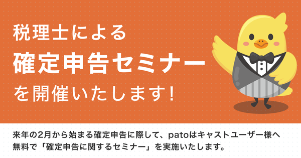 【2月10日開催】patoキャスト向け 無料税務セミナー開催のお知らせ
