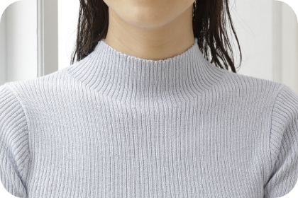 今回のハイネックの仕様をベースに、秋冬シーズンの トップスとして人気が高いタートルネックも別企画で用意しており、8月26日(木)からEC先行販売します。