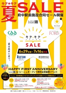 一般社団法人まちづくり府中(本社:東京都府中市、理事長:髙橋伸二)は、京王線府中駅周辺の商業施設(ル・シーニュ、伊勢丹府中店、フォーリス、くるる、京王府中SC)と連携し、6月29日(金)から7月16日(月・祝)まで、第2回キテキテ府中を開催します。期間中、商業施設では合同でセールを行うほか、ル・シーニュオープン1周年記念イベントとして、府中駅南口ペデストリアンデッキでイベントを行います。