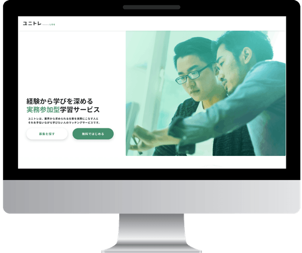 人気の4つの職種であるマーケター・エンジニア・デザイナー・ディレクターの実務を手伝いながら学ぶ、参加型学習マッチングプラットフォームです。