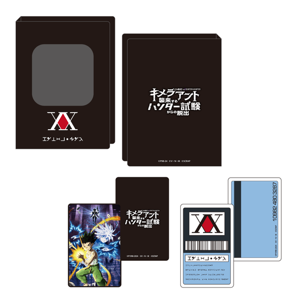 そんな「ハンター試験キメラアント」オリジナルグッズの販売が決定いたしました。中でもオススメは、ゴンやキルア、メルエムの描き下ろしデザインを使用したカードやハンターライセンスモチーフのカードも付属する「謎付きトレーディングカードケースセット」。お気に入りのカードが持ち運べて、さらに解きごたえたっぷりの謎も付いてくるという豪華なグッズです! メインビジュアルでも圧倒的なオーラを放っているメルエムの描き下ろしデザインが使用されたグッズは、本イベントならではのレアアイテムですので、お見逃しなく。