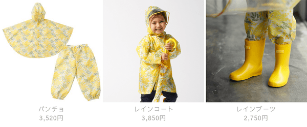 少しPOPで、キッズの表情がよりかわいく見えるデザインのレインアイテムです。