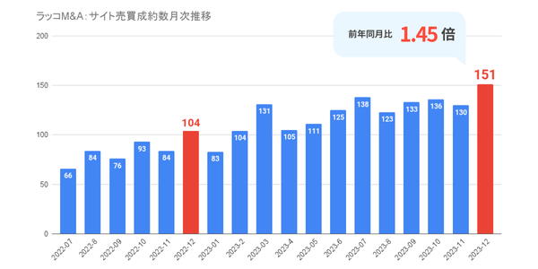 ラッコ株式会社(福岡市中央区)が運営するサイト売買プラットフォーム「ラッコM&A」は、2023年第4四半期(2023年10月〜12月)に、過去最多となる417件のサイト売買成約を記録しました。