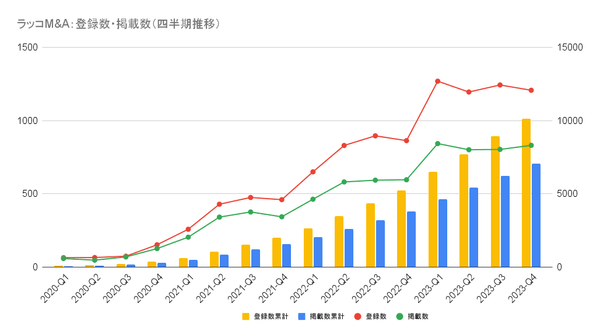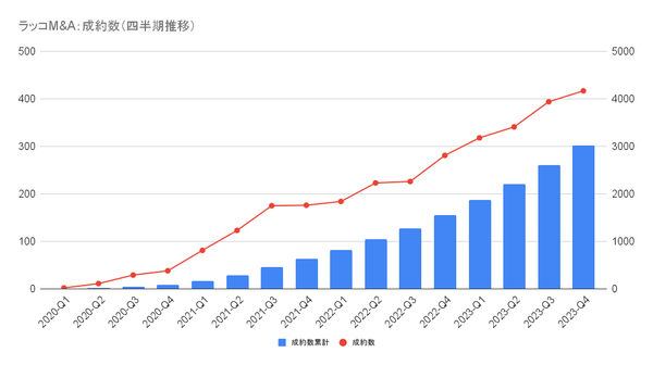 【ラッコM&A】2023年10-12月期実績:成約数は417件で過去最高を記録。前年同期比1.48倍の成長