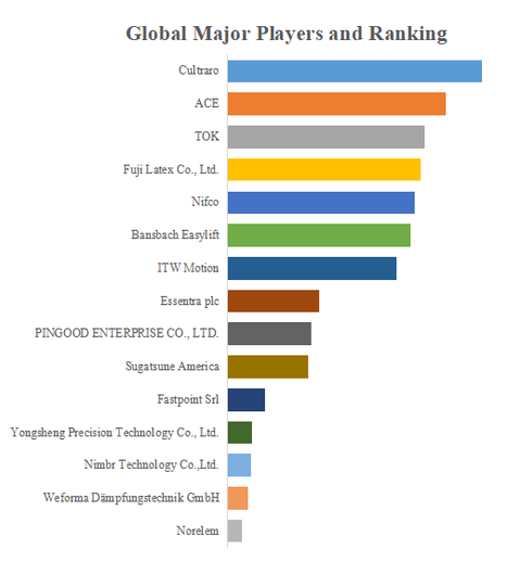 YHResearchのトップ企業研究センターによると、小型ロータリーダンパーの世界的な主要製造業者には、Cultraro、ACE、TOK、Fuji Latex Co., Ltd.、Nifco、Bansbach Easylift、ITW Motion、Essentra plc、PINGOOD ENTERPRISE CO., LTD.、Sugatsune Americaなどが含まれている。2023年、世界のトップ5企業は売上の観点から約38.0%の市場シェアを持っていた。