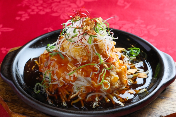 兵庫県産の赤鶏もも肉をカラッと揚げ、食欲をそそる特製スタミナソースで仕上げました。