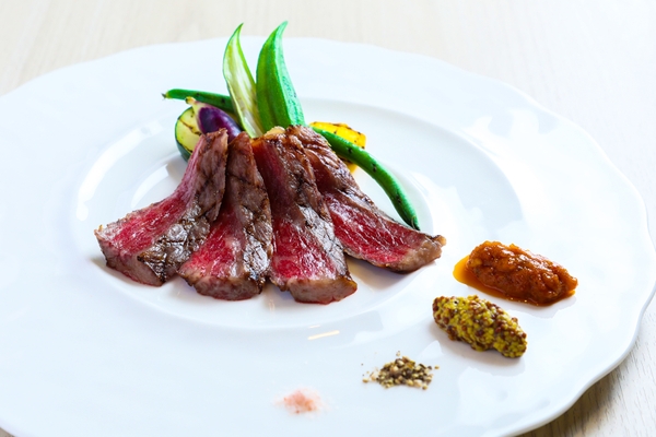 香川の名産オリーブ牛の特徴である食感や肉の甘味を、定番の野菜と自家製ソースと共にお楽しみください。