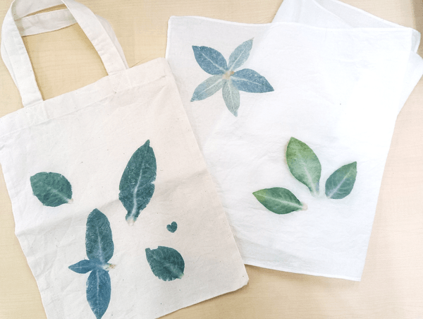 手ぬぐいとエコバックのどちらかを選んで、葉っぱで図柄をデザインします。世界でひとつだけの作品づくりはいかがですか?