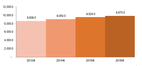 一人当たりの米国医療費、(USD)、2013ー2016年