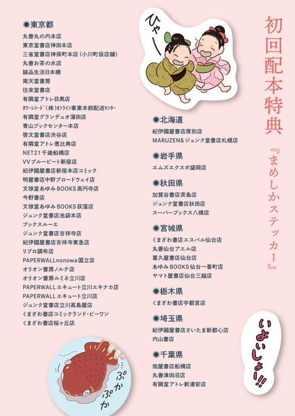 初回配本特典として、購入者には『まめしかステッカー』がついてくる。