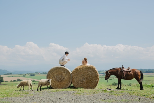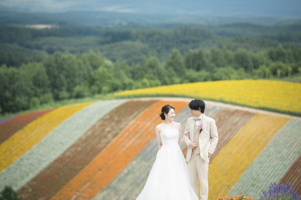 スタジオSOLA美瑛店は、北海道の雄大な自然に囲まれたロケーションが魅力。時近隣には、四季折々の花が咲き誇る「四季彩の丘」、動物とふれあいながら撮影できる「ファームズ千代田」、広大な景色と美しい夕日を望める「パッチワークの路」など、多くの絶景スポットが点在。おふたりにぴったりのロケーションをご提案します。