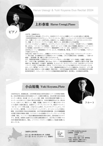 (有)おふぃすベガ(兵庫県宝塚市)主催、『上杉春雄・小山裕幾 デュオ・リサイタル』が2024年7月9日(火)にルーテル市ヶ谷センター(東京都 新宿区 市谷砂土原町 1-1)にて開催されます。
