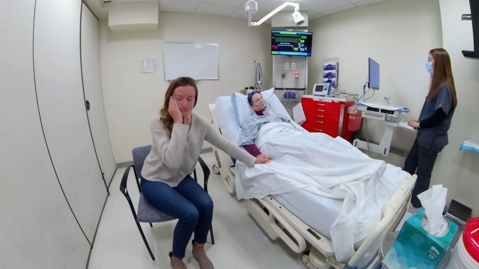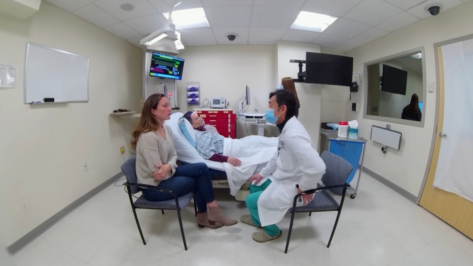 本コンテンツは、終末期患者が救急部(ED)に運ばれ、患者本人は呼吸が苦しく会話ができない状態であり、医師は患者の家族(娘)とコミュニケーションを取りながら、患者の希望する治療方をともに判断するシーンを再現しており、医師の目線を体験します。