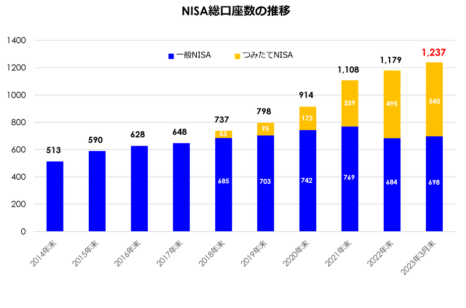 今日、10月4日は投資の日です。今年は、来年1月に開始する新NISAや、大手ネット証券2社の日本株式手数料無料というニュースで、いつになく賑わいを見せている証券業界ですが、2014年から開始された一般NISAと2018年から開始されたつみたてNISAの口座数も順調に伸び、2023年3月末のNISA総口座数は1,237万口座、そして、証券保管振替機構(ほふり)が公表している個人株主数※-2は、現在1,496万人になるそうです。