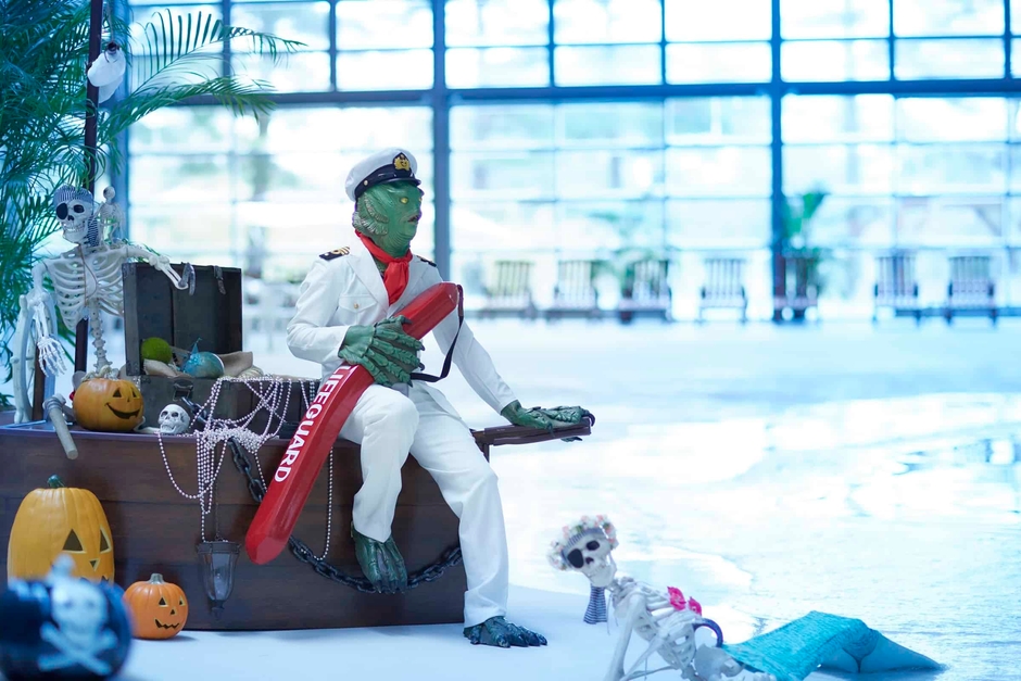本イベントの期間中は毎日、モンスターたちがゲストをもてなすスタッフとしてホテルで働きます。ホテルをまとめる「ヴァンパイア支配人」のもと、フロントではゲストの荷物を運ぶ「Mr.ゾンビポーター」や「Ms.ゾンビポーター」、プール「il mare(イルマーレ)」では気まぐれに登場する「半魚人」など、様々なモンスターたちが各々のスタイルでサービスを行います。