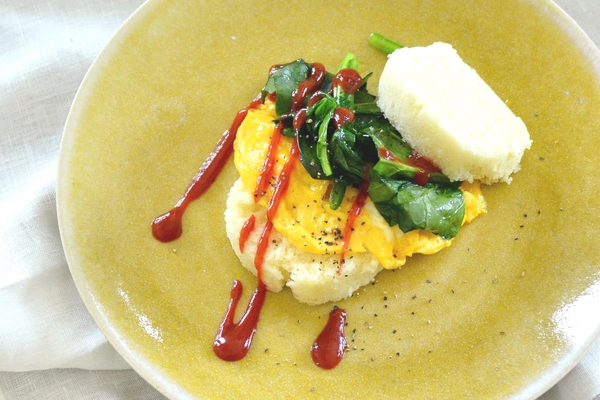 【グルテンフリーなおいしいごはん】スクランブルエッグ添えグルテンフリーケーキ レシピのご紹介★