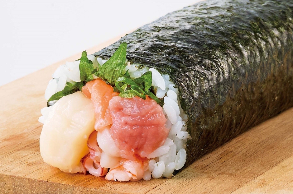 北海道産帆立・メバチまぐろ・ねぎとろなどが入った海鮮太巻。
