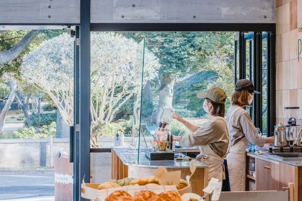 1.既存の駐車場や設備置場を客席としたり、公園側に大きな開口(窓)を設けたりすることで、公園や地域と密接な建物に改修