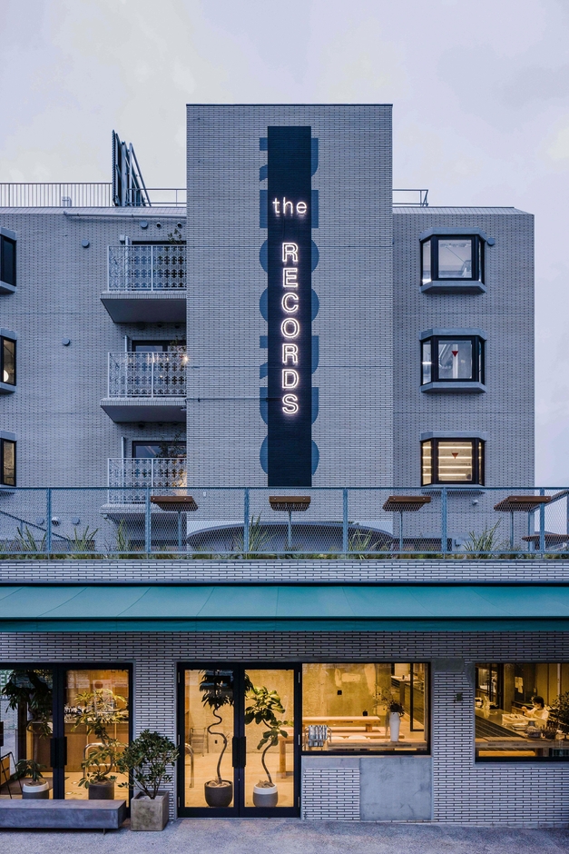 千葉公園で夜のアートフェス「夜ハス」を定期開催。その公園に隣接するのがこの複合商業施設『the RECORDS』。千葉駅から近く、公園隣接という好立地だが、元ビジネスホテルだった建物の1階は駐車場で、公園への眺望も客室の小さな窓面しかなく立地を生かせていない。