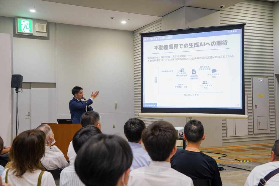 不動産業界特化のDX支援サービスを展開する、株式会社いえらぶGROUP(本社:東京都新宿区、代表取締役:岩名泰介、以下「いえらぶGROUP」)は、2025年9月17日~18日に東京ビッグサイトで開催された「賃貸住宅フェア2025in東京」に出展しました。9月17日には、いえらぶGROUP 執行役員 三津田貴紀がセミナーに登壇しました。