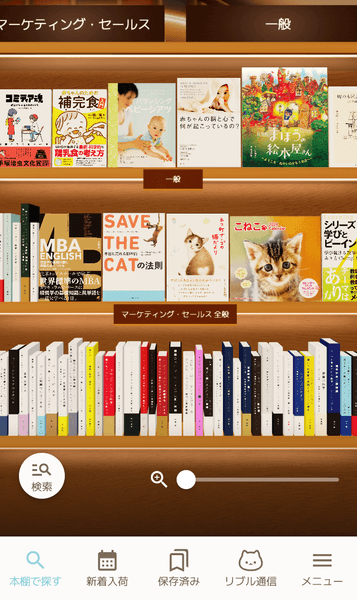 まるで町の本屋さんのように、ジャンル別の本棚から本を探すことができるアプリです。各ジャンルの本棚の内容は毎日アップデートされ、新刊や話題書を中心に取り入れられます。