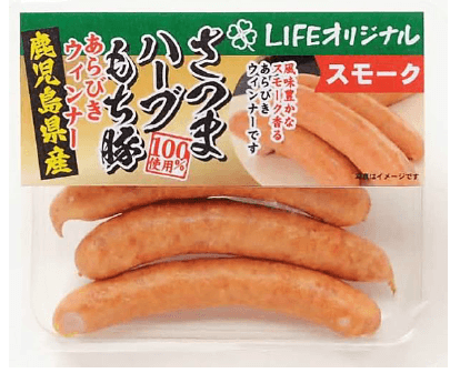 ライフオリジナルの国産原料を使用したウインナーをお届けしたいと思い開発しました。味わい・食感などを試行錯誤し、独自の製法で、ライフが自信を持ってお届けする「鹿児島県産さつまハーブもち豚」を100%使用したウインナーが完成しました。国産産地指定の銘柄原料を使用しながらお手頃な価格を実現しましたので、スモークとチーズの2つのフレーバーをぜひ食べ比べてみてください!