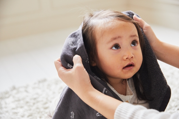 バスタオルやミニハンカチなどのタオルアイテムは、柔らかいコットンとふんわりとしたパイル地で肌あたりのやさしさを追求しました。