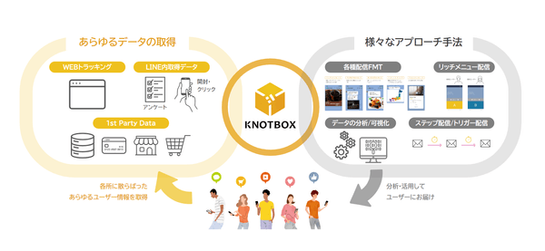 (※)KNOTBOXでは、ユーザーが許諾したデータのみを取得・活用いたします。取得したデータの取り扱いについては、KNTOBOXデータポリシーのとおりです。
