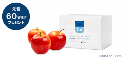 今回、フロスト・アンド・サリバンのパートナー企業としてスマート農業の普及を促進するイスラエル発アグリテック企業「ネタフィム」が参画。本ウェビナーのゲストスピーカーには、ネタフィムと共同で点滴灌水の研究を行う香川大学農学部 豊田正範教授と、スマート農業の研究を行う東京農業大学地域環境科学部 藤川智紀教授を招き、フロスト・アンド・サリバン・ジャパン成長機会戦略ディレクター杉原孝志とともに、テクノロジーと進化する「農業」に焦点を当て、サステナビリティの先にある未来像を描いていきます。また、60周年にちなんで、本ウェビナーの登録者先着60名に青森県にあるネタフィムの点滴灌水を導入した畑で育ったリンゴセットをプレゼントします。