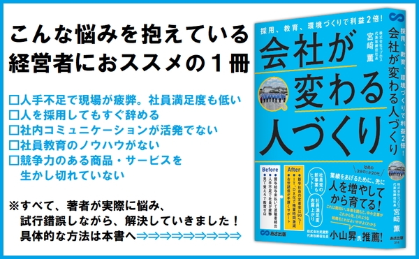 『採用、教育、環境づくりで利益2倍!会社が変わる人づくり』著者宮﨑薫が電子書籍で配信開始