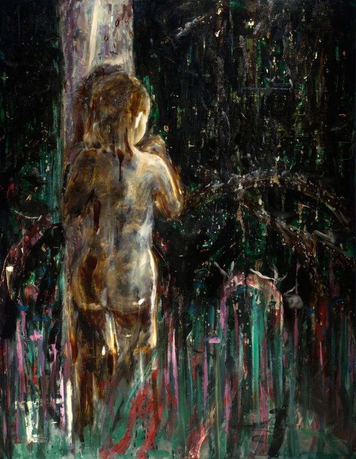 描かれる女性像は、天と人のあいだ、絵画と現実世界との接点にいる狭間の者たちです。
