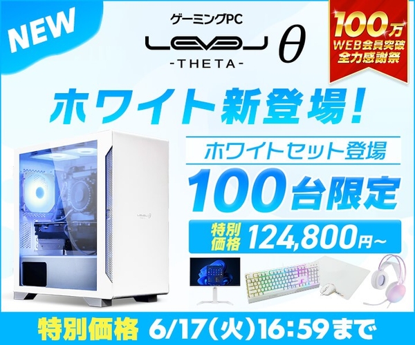 100万WEB会員突破を記念して、ゲーミングPC LEVELθからホワイトが新登場!