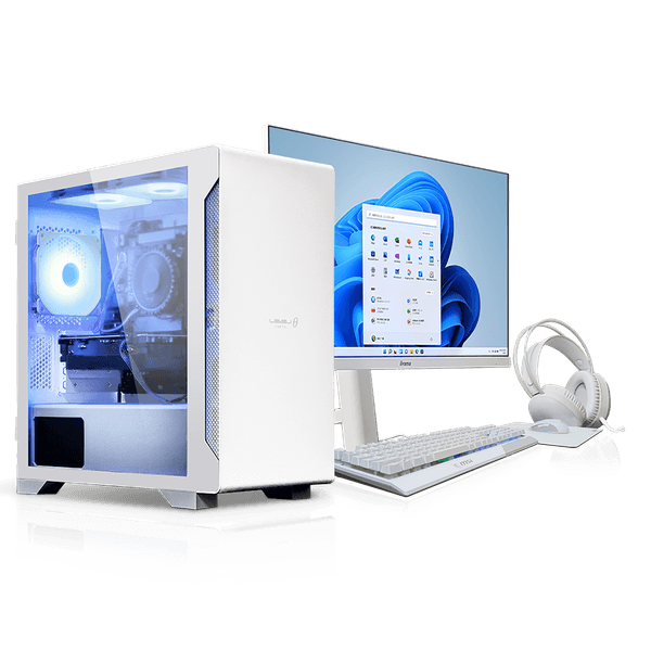 白いLEDファン搭載のホワイトケースに加えて、ホワイトのキーボード・マウス・モニター・マウスパッド・ヘッドセットが一緒になったデバイスセットを100台限定でご用意しました!