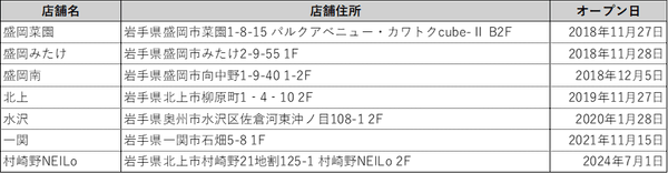 ●岩手県内のエニタイムフィットネス店舗 ※オープン日順
