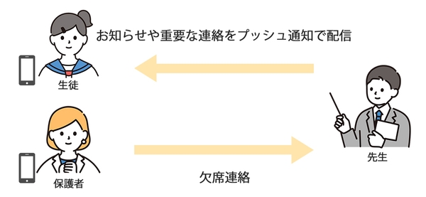 利用人数が多くなるにつれて、お知らせが全員へ伝わっていない、欠席連絡や急を要する内容の連絡手順が確立されていない、といった先生・生徒・保護者間での情報伝達に課題がありました。