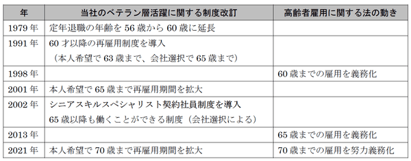 【ご参考】 <これまでの当社のベテラン層活躍に関する制度改訂>