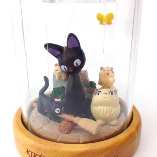 ネジを回すとジジが首を振ったり子猫たちが動く仕掛け付きのオルゴールです。オルゴールの曲は「やさしさに包まれたなら」