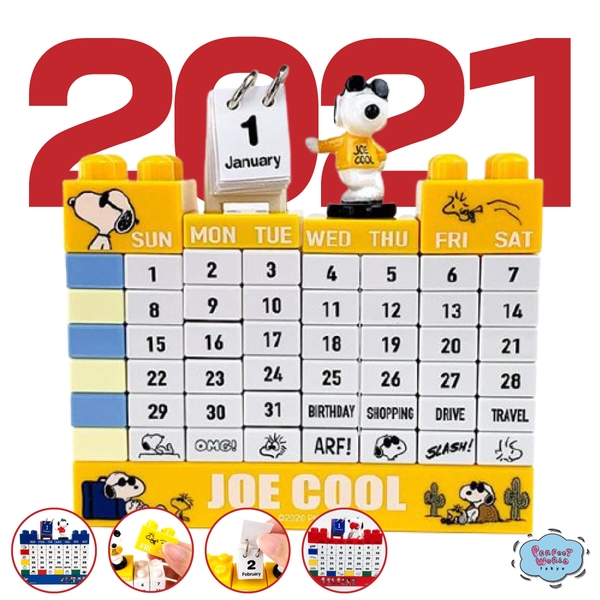 今年の初ニュースは、いつでもスタートできて便利なブロック万年カレンダーに、スヌーピーのジョー・クールが登場たのでカラーバリエーションも合わせてご紹介します♫2021年はどんな年にしますか?このブロック、楽しく組み替えてもちろんずーーっと使えます!誕生日などの予定ブロックもついていて、ワクワクします。一年の計は元旦にあり!といいますが、いつでも始められる楽しいカレンダーは、今日お届けするのにぴったりのトピックです♪