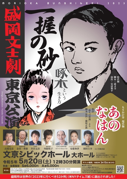 今回は、歌人石川啄木の「生誕と終焉の地」の縁に繋がる、東京都文京区と盛岡市の友好都市提携5周年を記念し、文京シビックホールを舞台に、啄木の半生を描く時代物などを豪華キャストらが演じます。