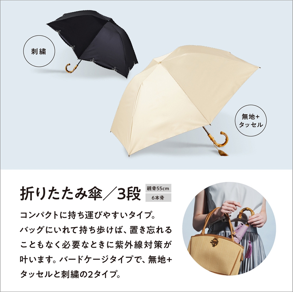 3段折りたたみ日傘(無地+タッセル/刺繍):https://zozo.jp/shop/wpc-kiu/goods/54529090/