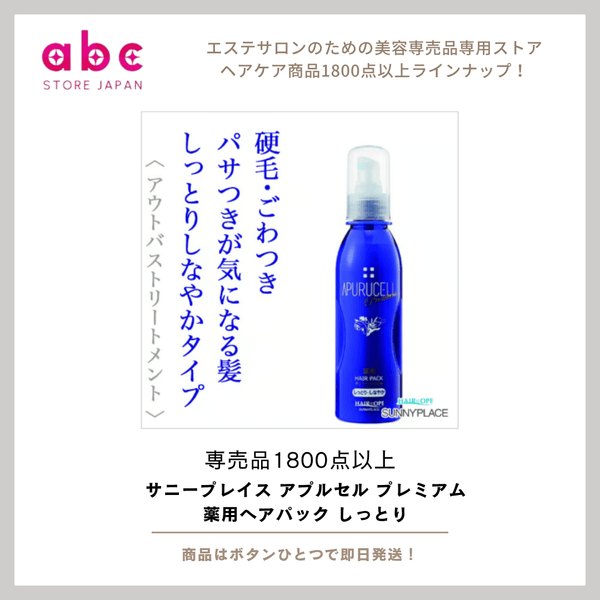 「サニープレイス アプルセル プレミアム薬用ヘアパック しっとり」で、ワンランク上のヘアケアをぜひご自宅で体感してください。