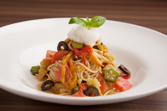 (1) 冷製フィデリーニ 色々夏野菜とフルーツトマトのソース トマトの泡と一緒に 1,150円