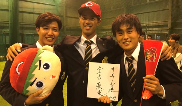 ▽広島東洋カープ・宇草孔基 選手、大瀬良大地 選手、西川龍馬 選手、床田寛樹 選手