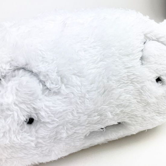 こちらもふわふわで気持ちいい、シロのペンポーチです。真っ白でふわふわ~♡小物入れとしても使えますよ。
