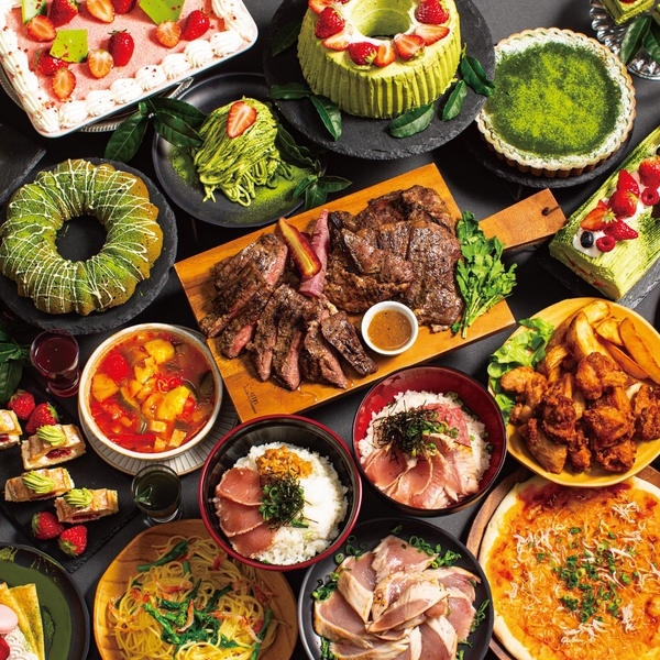 <デザート>クレープ チョコバナナ/クレープ フルーツプリンアラモード/いちごのショートケーキ/コーヒーショコラケーキ/白玉こしあんぜんざい/フルーツ杏仁/【ディナー限定】ハーゲンダッツグリーンティー あんみつトライフル/フルーツカクテルムース/カフェジュレ/パンドジェンヌ/しぼりたていちごモンブラン (約20種)